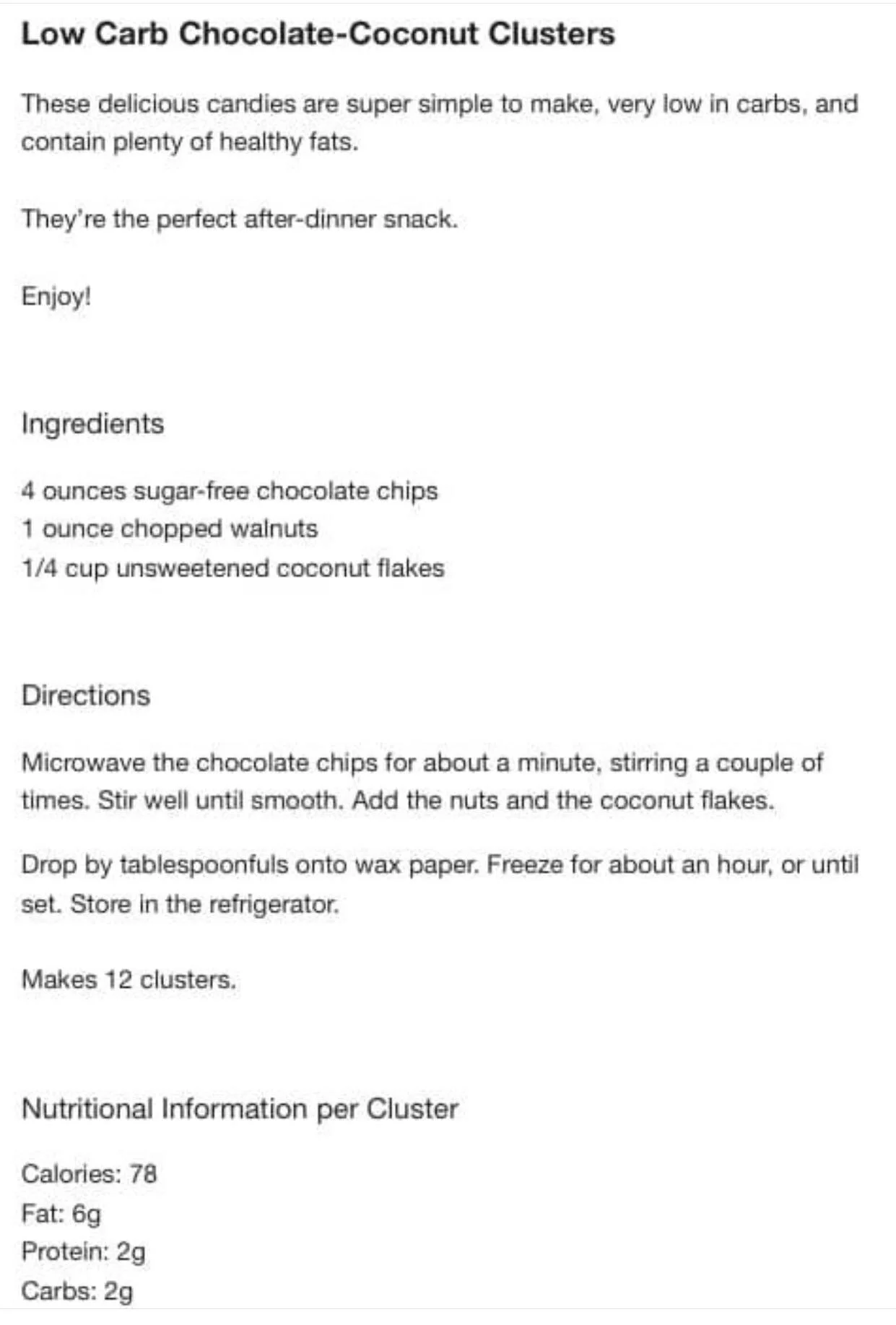 Low Carb Chocolate-Coconut Clusters Pamela EatonJanuary 16, 2020 Facebook0 Twitter Pinterest0 0 Likes